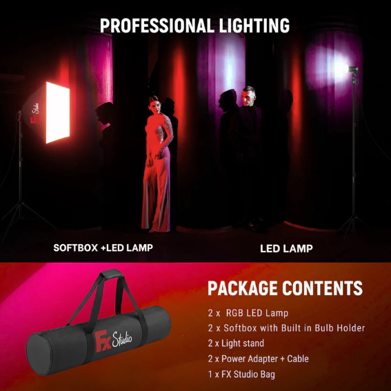 Unleash your creativity with the FX Studio 50×70cm RGB Softbox Lighting Kit, the perfect all-in-one lighting solution for photographers, videographers, and content creators.