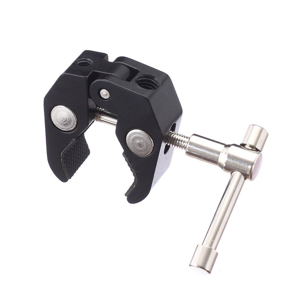 The included super clamp attaches securely to tables, tripods, rods, and other surfaces — perfect for studio, photography, and video setups.