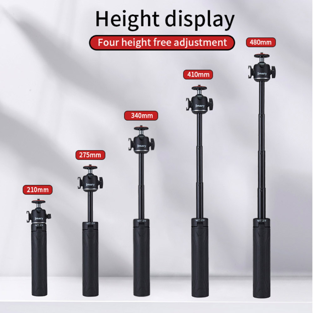 The Jmary MT-29 Portable Tripod is a compact and versatile support solution for smartphones, cameras, and accessories. Weighing only 180g with a folded length of 21cm, it’s easy to carry for travel, outdoor shooting, and everyday use.