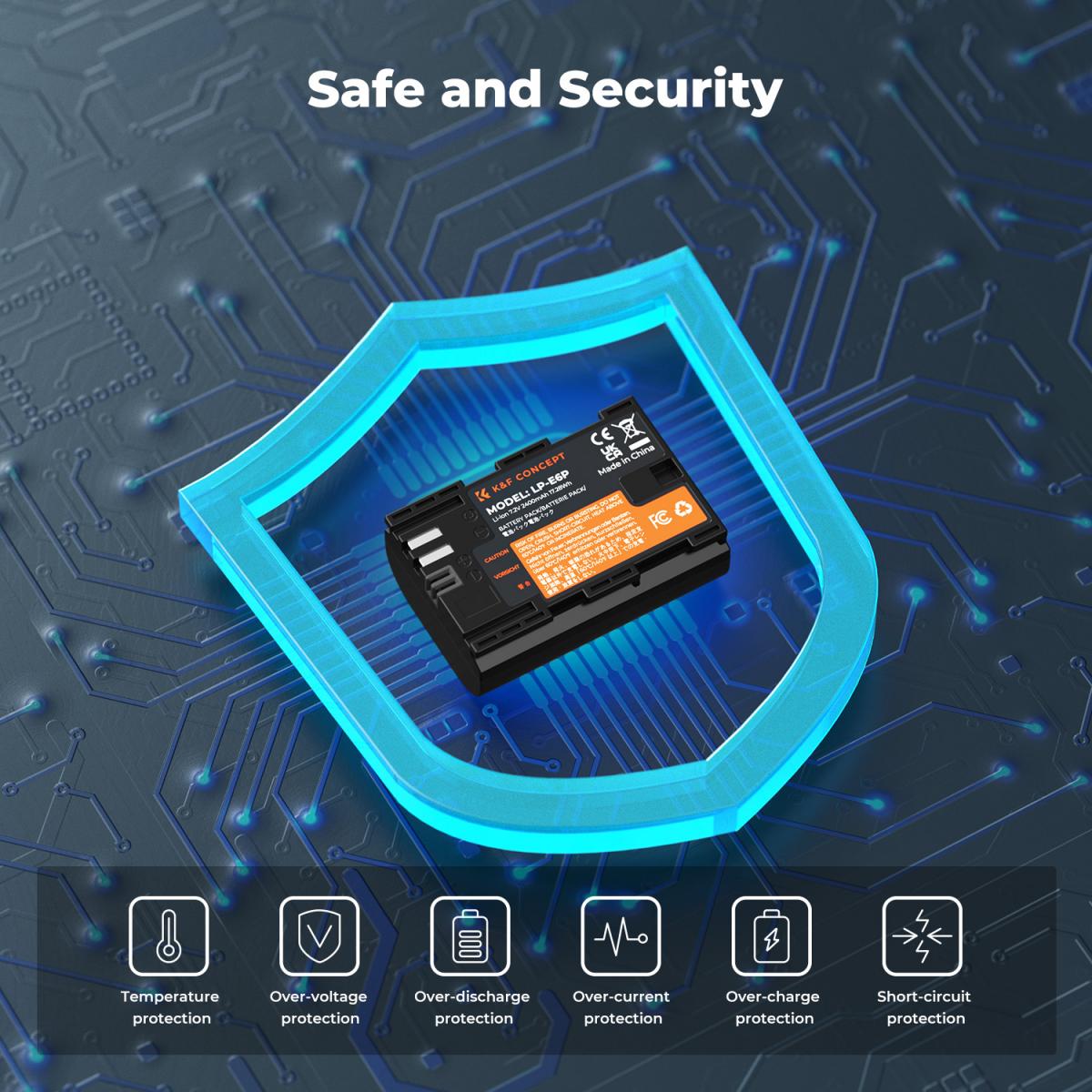 K&F Concept 2400mAh LP-E6P 2-Pack Battery and Dual Slot USB Charger Compatible with Canon EOS R5 Mark II, R5, R6 Mark II, R6, R7 Camera (KF28.0093) Overview